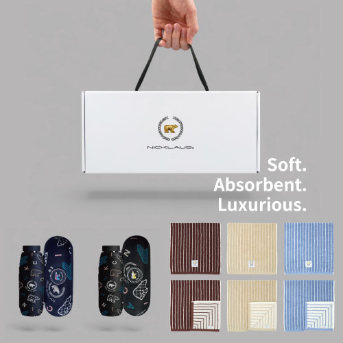 잭니클라우스 5단캡슐패치우양산+호텔수건 스트라이프 180g (국산) 선물세트