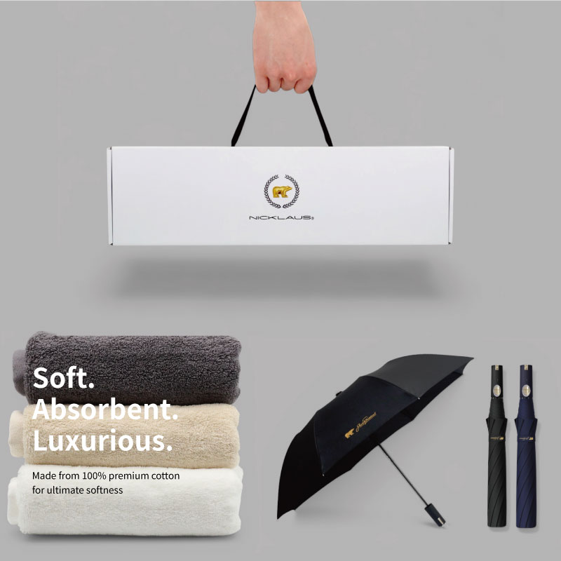잭니클라우스 2단폰지 우양산+프리미엄 호텔수건 200g (국산) 선물세트