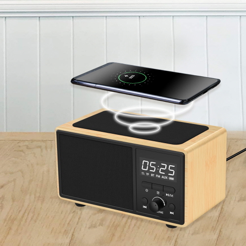 엔틱함이 느껴지는 '우드패턴'의 탁상용 시계,고속무선충전,스피커 기능