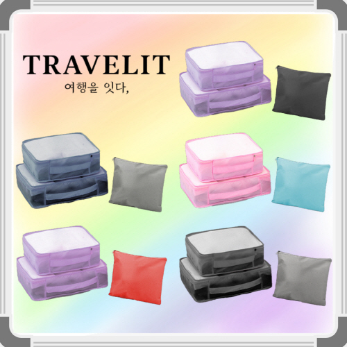 [트래블잇] 내맘대로 8컬러 믹스 여행용파우치 3종세트 캐리어정리 실속구성 3P